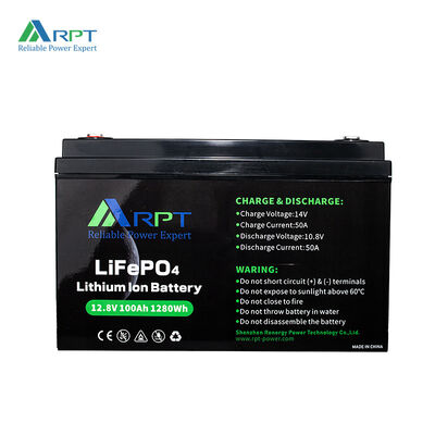 12V 100Ah LiFePO4 배터리 1280Wh 깊은 사이클 리?? 철화강 재충전 배터리 BMS 내장, RV에 적합
